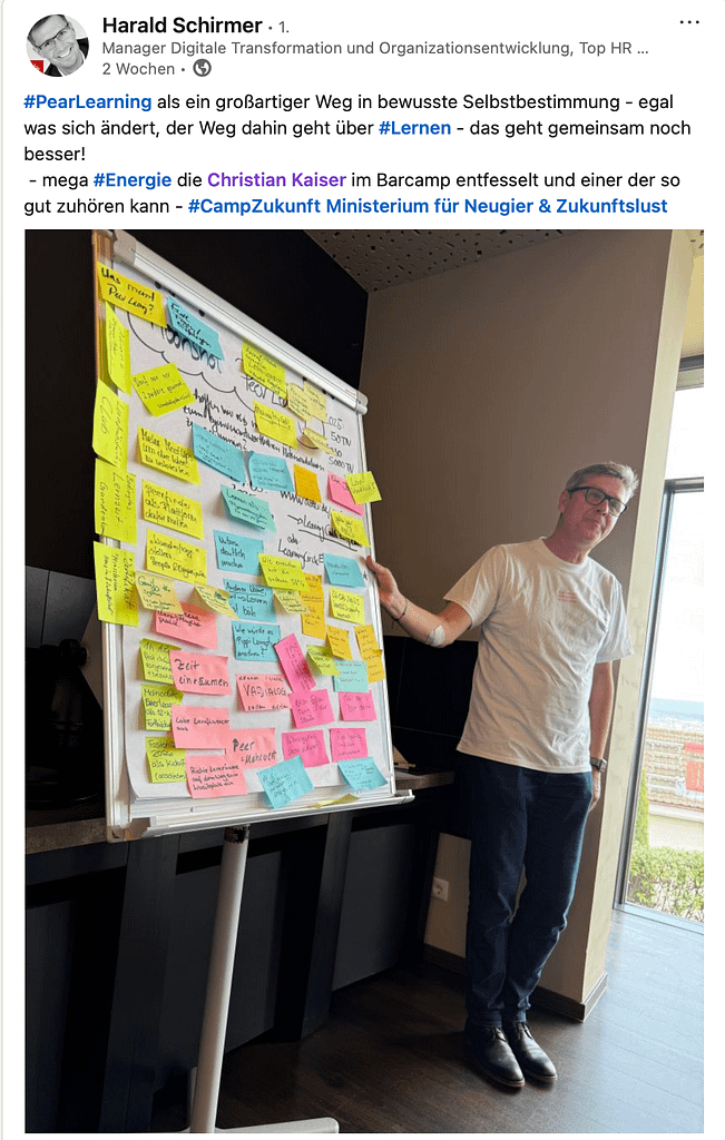 - „Teil des Ökosystems werden“ → Peer Learning als Bestandteil des Unternehmens verstehen.